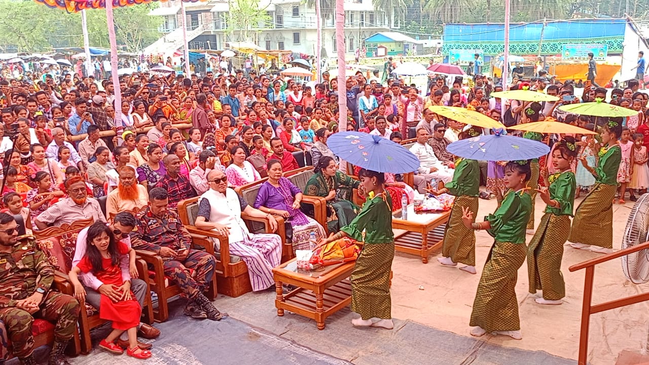 কাপ্তাইয়ের চিংম্রং এ সাংগ্রাঁই জল উৎসবে মাতোয়ারা হাজার হাজার তরুণ তরুণী