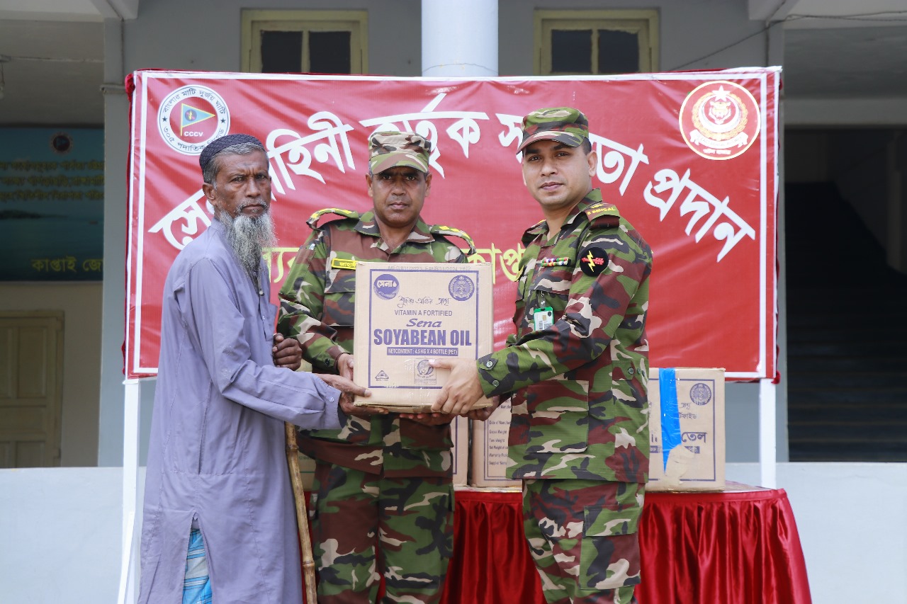আসন্ন ঈদ উল ফিতর উপলক্ষে কাপ্তাই সেনা জোনের উদ্যোগে স্থানীয় গরীব ও দুস্থ্যদের মধ্যে ঈদ উপহার সামগ্রী (চাল, আটা,তেল, ডাল,