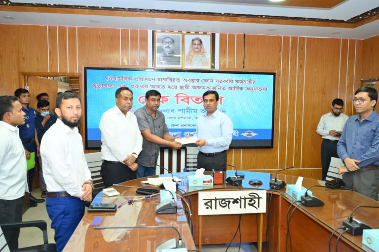 রাজশাহীতে মৃত ও আহত সরকারি ২৫ কর্মচারীর পরিবারকে আর্থিক অনুদান