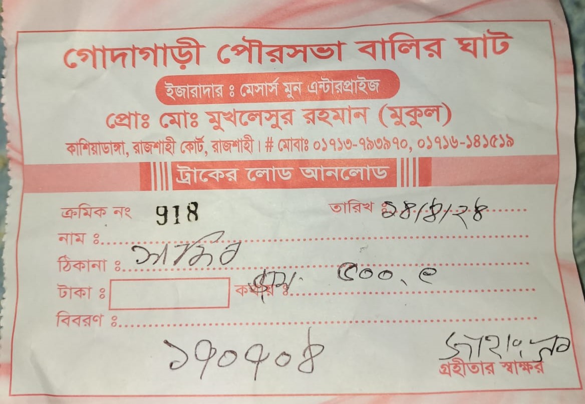 রাজশাহীর গোদাগাড়ী পৌরসভায় ট্রাক থেকে টোল আদায়ের নামে চাঁদাবাজির অভিযোগে দুইজনকে আটক করেছে পুলিশ। একজন ট্রাক ড্রাইভার জাতীয় জরুরী সেবা