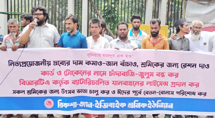 রিকশার লাইসেন্স দেওয়ার মাধ্যমে চাঁদাবাজি ও কার্ড ব্যবসা বন্ধের দাবি জানিয়েছে রিকশা-ভ্যান-ইজিবাইক শ্রমিক ইউনিয়ন। গতকাল জাতীয় প্রেস ক্লাবের সামনে