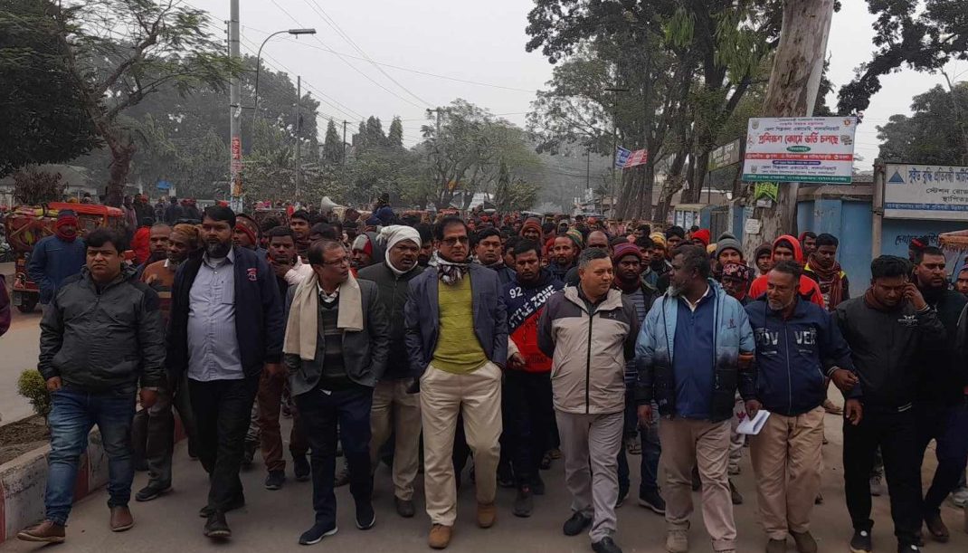 জেল-জরিমানায় ট্রাক্টর বিকল করার প্রতিবাদে বিক্ষোভ ও সমাবেশ করেছে মালিক শ্রমিকরা
